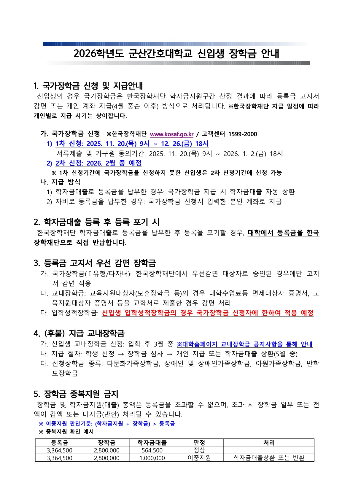 | 2026학년도 군산간호대학교 신입생 장학금 안내 | ||